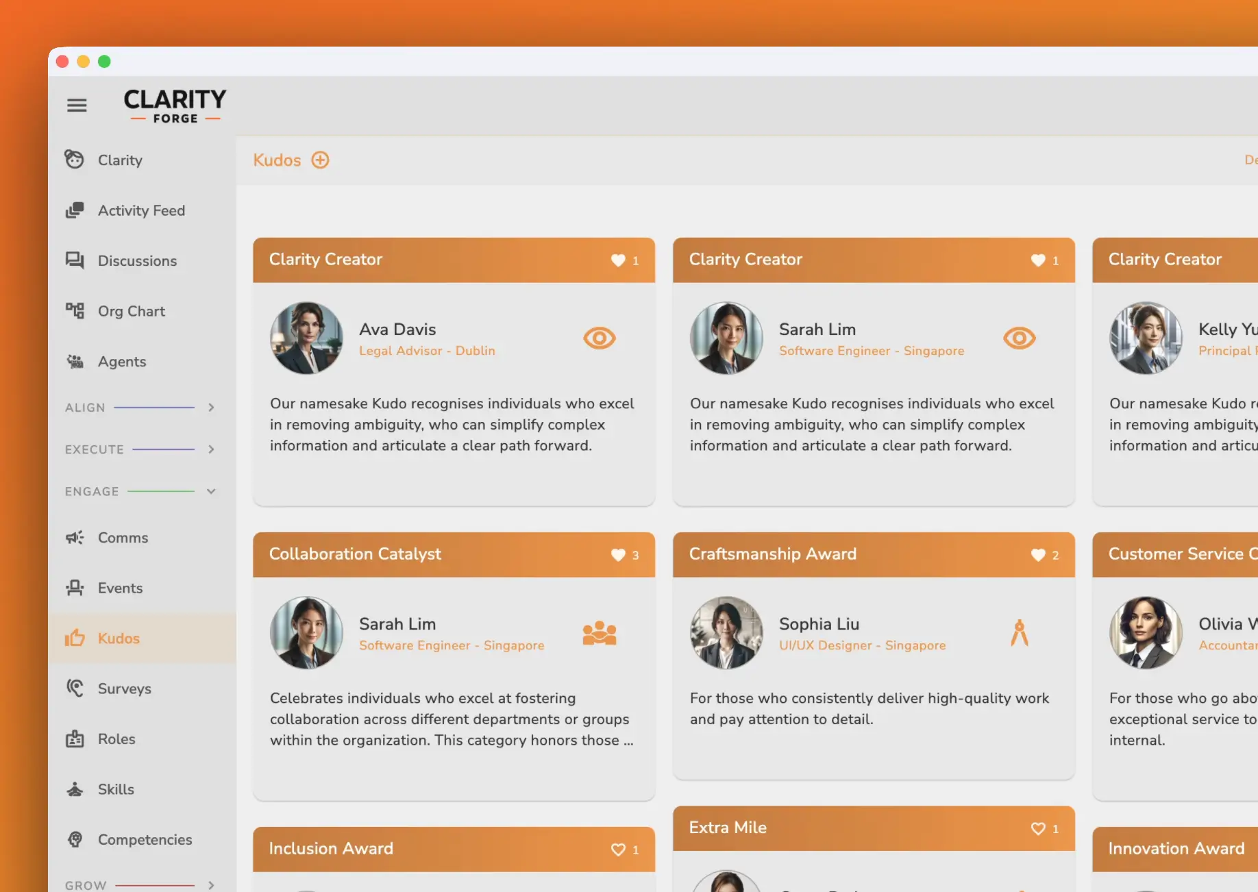 Where others solve fragments, Clarity Forge unifies strategy, execution, people and culture, with contextual AI and full native app parity.