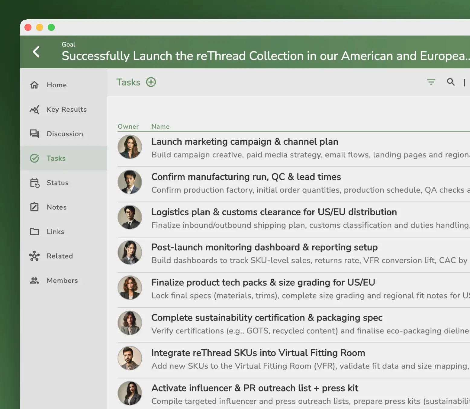 Capture tasks and milestones with clear owners, priorities and timelines