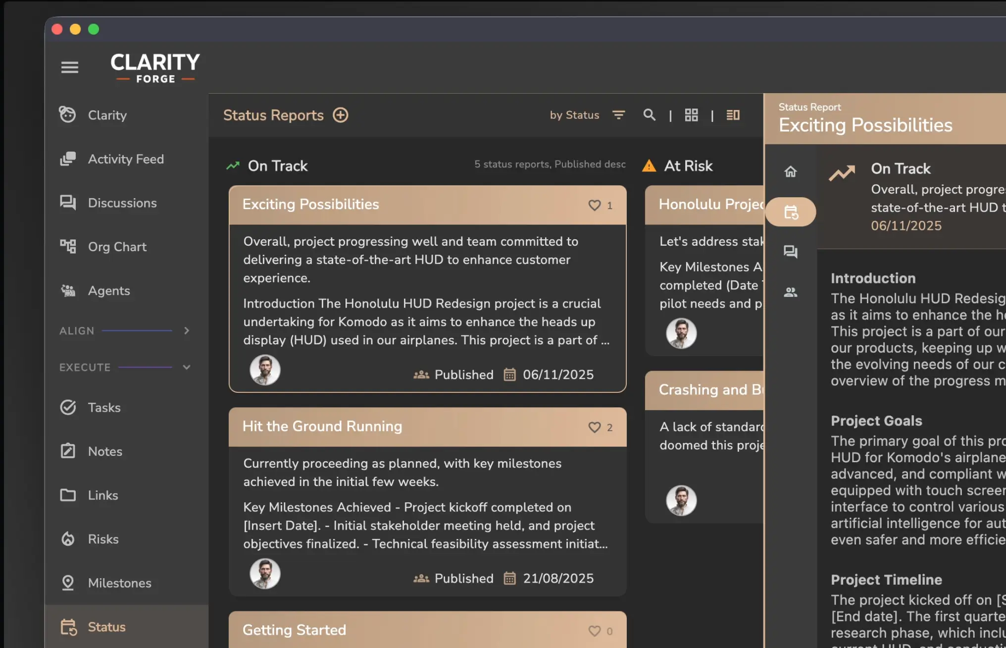 Execute standardizes updates so leadership can compare progress across teams and projects.